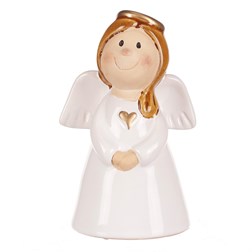 Anjel - keramická figúrka, biela so zlatým srdcom