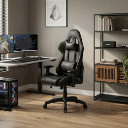AkciaHerné kreslo, hojdací mechanizmus, čierna ekokoža, KA-F03 BK