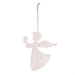 Anjel kovový s hviezdou - závesný, veľ. M, farba biela