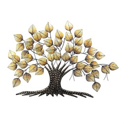 Strom kovový - nástenná dekorácia, zlaté listy