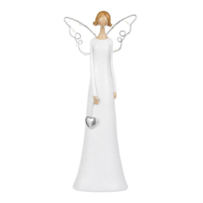 Anjel so svietiacimi krídlami - polyresin, LED osvet., biely