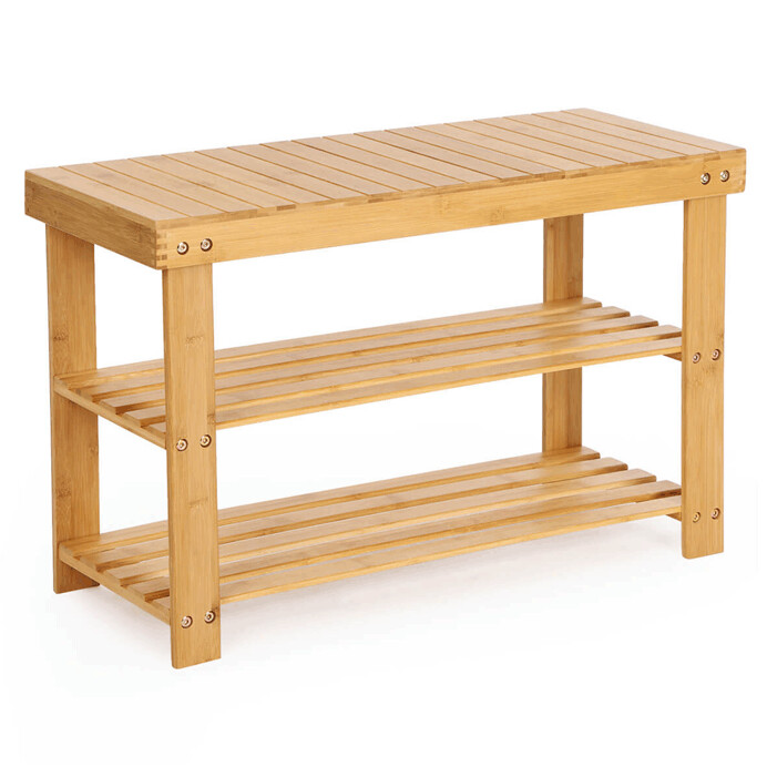 Botník z prírodného bambusu ponúka praktické riešenie na usporiadanie obuvi v predsieni alebo chodbe. Jeho pevné prevedenie s dvoma policami umožňuje efektívne využitie úložného priestoru, pričom otvorená konštrukcia zabezpečuje dostatočné vetranie. Povrch je hladký a ľahko udržiavateľný, čo prispieva k dlhej životnosti výrobku. Kompaktné rozmery 70x28x45 cm umožňujú umiestnenie aj do menších priestorov. Prírodný odtieň bambusu prináša do interiéru príjemný a svieži vzhľad.