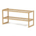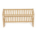 Botník s dvoma policami je vyrobený z masívneho bambusu v prírodnom odtieni, ktorý prináša do interiéru svieži a teplý vzhľad. Jeho otvorená konštrukcia umožňuje dobré vetranie obuvi a zároveň ponúka dostatok priestoru na uloženie viacerých párov topánok. Pevné bambusové lišty zabezpečujú stabilitu a dlhú životnosť, pričom ľahká povrchová úprava zachováva prirodzenú štruktúru materiálu. Kompaktné rozmery a jednoduchý dizajn umožňujú ľahké umiestnenie v predsieni alebo šatníku, kde botník efektívne pomáha udržať poriadok.