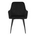 Jedálenská stolička s čiernym zamatovým poťahom ponúka pohodlné sedenie vďaka mäkkému čalúneniu a ergonomicky tvarovaným podrúčkam. Čalúnenie je doplnené dizajnovým prešitím v kosoštvorcovom vzore, ktoré zvýrazňuje jej moderný vzhľad. Pevné kovové nohy v čiernom matnom prevedení zabezpečujú stabilitu a dlhú životnosť stoličky. Zamatová látka je príjemná na dotyk a ľahko sa udržiava, čo ju predurčuje na použitie v jedálňach aj iných obytných priestoroch. Stolička nie je otočná, čo prispieva k jej jednoduchej a pevnej konštrukcii.