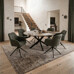 Moderná jedálenská stolička v zelenej farbe s efektným prešitím chrbtovej aj prednej časti operadla. Prešitie je vo farbe poťahového materiálu. Zadná časť operadla je doplnená vkusným madlom pre ľahšiu manipuláciu. Štyri kovové nohy v matnom práškovom nástreku vychádzajú z centrálneho bodu v strede sedadla. Sedák je otočný o P90 ° L 90 ° s vratným mechanizmom - funkcia reset.