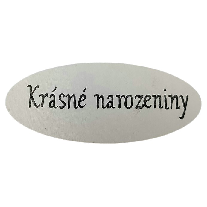 Ceduľka "Krásne narodeniny" - drevo, biela, v sáčku 12 ks, cena za 1 ks