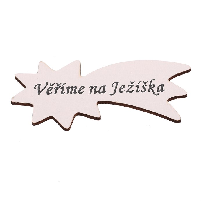 Ceduľka "Veríme na Ježiška" - drevo, biela, v sáčku 12 ks, cena za 1 ks