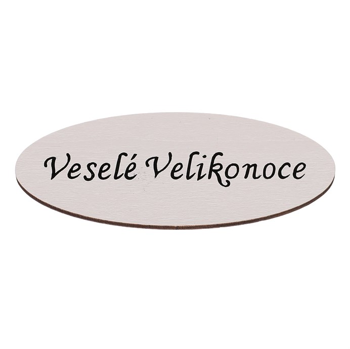 Ceduľka "Veselá Veľká noc" - drevo, biela, v sáčku 12 ks, cena za 1 ks