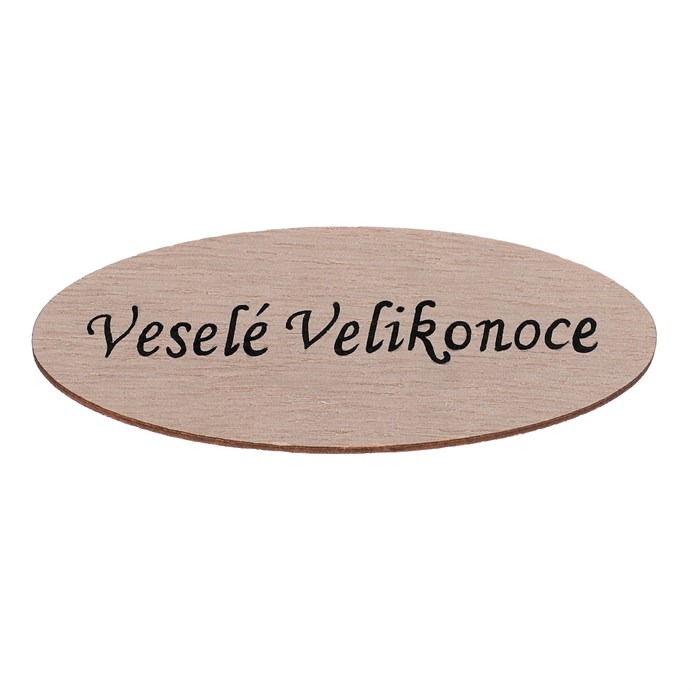 Ceduľka "Veselá Veľká noc" - drevo, prírodné, v sáčku 12 ks, cena za 1 ks