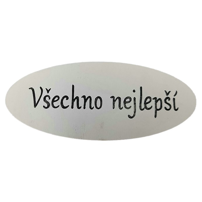 Ceduľka "Všetko najlepšie" - drevo, biela, v sáčku 12 ks, cena za 1 ks