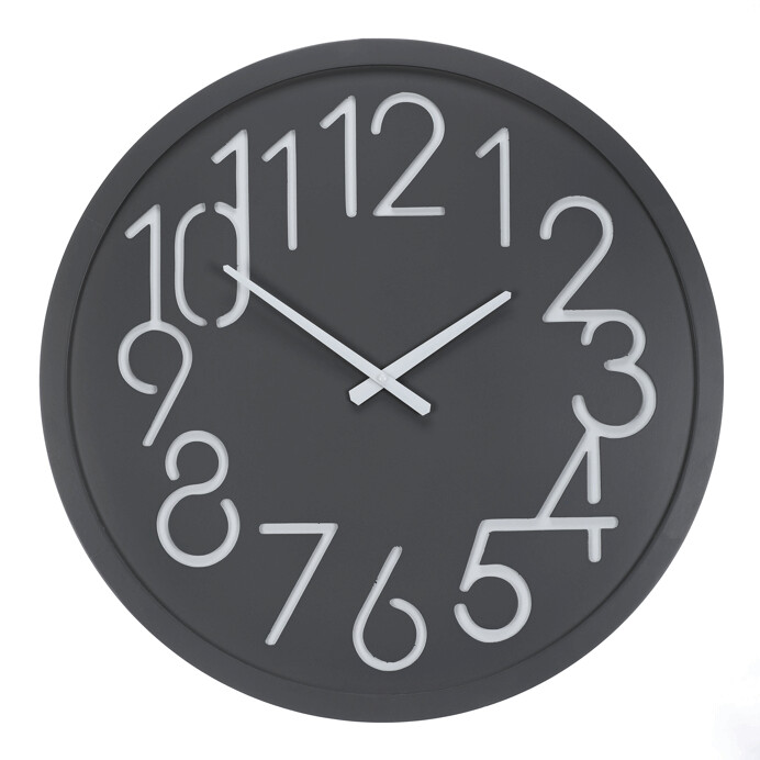 Nástenné hodiny s priemerom 60 cm v tmavosivom prevedení sú vyrobené z MDF materiálu, ktorý zabezpečuje pevnosť a stabilitu. Číselník tvorí výrazné biele číslice v modernom štýle, ktoré kontrastujú s tmavým podkladom a uľahčujú orientáciu na ciferníku. Jednoduché ručičky dopĺňajú minimalistický dizajn, ktorý sa hodí do rôznych interiérov od kancelárií po obývacie izby. Hodiny sú ľahké a ľahko sa zavesia na stenu, čím ponúkajú praktické a zároveň štýlové riešenie na meranie času.