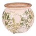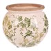Keramický obal v tvare okrúhleho džbánku zaujme svojim retro dizajnom s jemným dekórom zelených kvetov na svetlom podklade. Povrch je glazovaný s viditeľným jemným popraskaním, čo podčiarkuje osobitý charakter výrobku. Široký otvor umožňuje ľahké umiestnenie rastlín alebo dekorácií, zatiaľ čo stabilná základňa zaisťuje pevné postavenie. Tento obal je vhodný na interiérové ??použitie a prinesie do priestoru prírodný a nostalgický nádych.