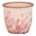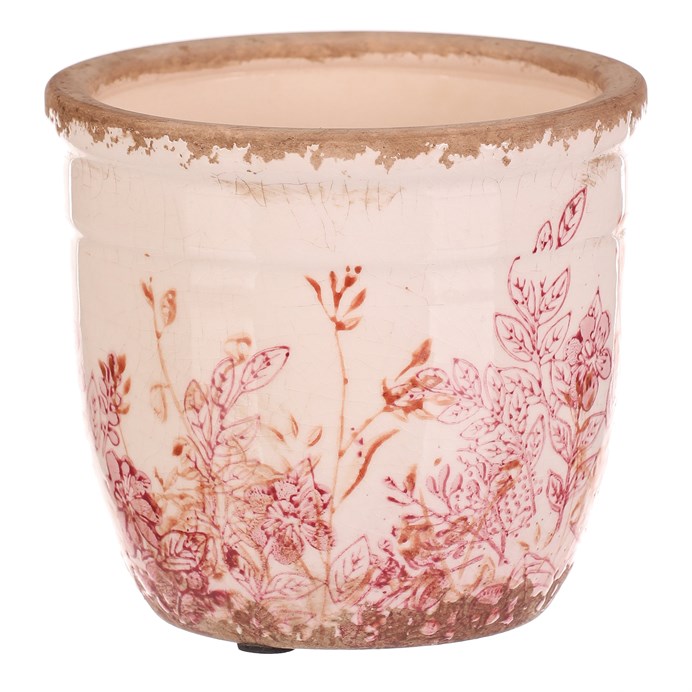 Keramický obal na kvety v guľatom tvare s retro motívom ružových kvetov prináša do interiéru jemný vintage nádych. Povrch je jemne patinovaný s efektom popraskanej glazúry, ktorá podčiarkuje autentický vzhľad. Obal je vhodný pre menšie rastliny a vďaka stabilnej základni bezpečne drží na mieste. Jeho prírodné odtiene a detailný kvetinový vzor vytvárajú príjemnú atmosféru v každom priestore.