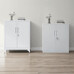 Úložná skrinka s rozmermi 80x40x100 cm je vyrobená z pevného kovu s práškovou povrchovou úpravou v bielej farbe, ktorá zabezpečuje odolnosť proti poškodeniu a jednoduchú údržbu. Skrinka ponúka tri vnútorné police, ktoré poskytujú dostatok priestoru na organizáciu rôznych predmetov, a je vybavená dvoma dverami s integrovanými úchytkami pre pohodlné otváranie. Kovové nožičky s nastaviteľnými pätkami zaručujú stabilitu aj na nerovnom povrchu. Praktický zámok na pravých dverách umožňuje bezpečné uzamknutie obsahu. Vďaka svojmu jednoduchému dizajnu a neutrálnej bielej farbe sa skrinka hodí do kancelárií aj domácich priestorov.