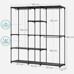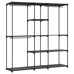 Otvorená šatníková skriňa v čiernom prevedení ponúka praktické riešenie úložného priestoru pre odevy a doplnky. Je vyrobená z pevného kovu s plastovými a látkovými prvkami, ktoré zabezpečujú stabilitu a jednoduchú údržbu. Konštrukcia obsahuje niekoľko políc a vešiakov, ktoré umožňujú efektívnu organizáciu oblečenia, vrátane zavesenia košieľ, kabátov či sukien. Vďaka otvorenému dizajnu je prístup k uloženým veciam rýchly a prehľadný, čo uľahčuje každodenné používanie. Rozmery a nosnosť zodpovedajú potrebám bežnej domácnosti či kancelárie.