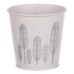 VýpredajObal kovový - kvetináč s pierkami, farba šedá