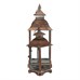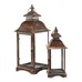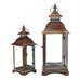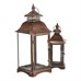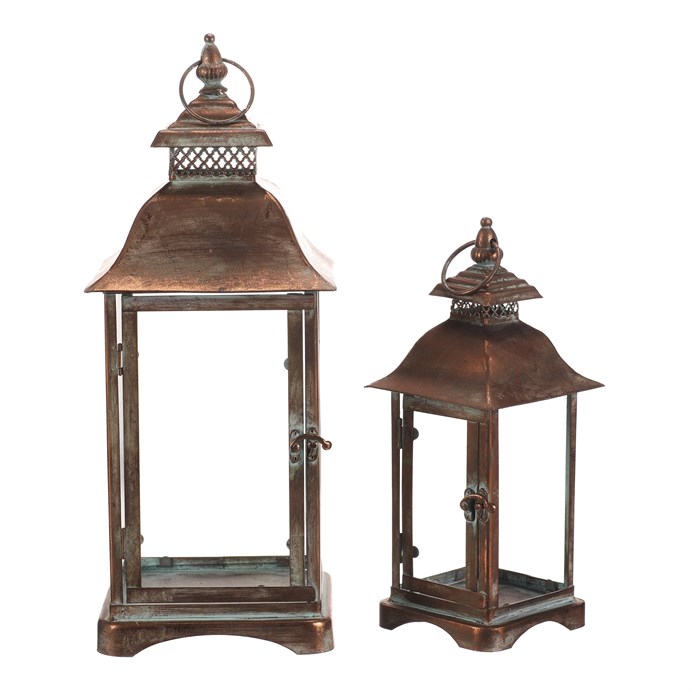 Sada dvoch kovových lampášov v medenom odtieni prináša do interiéru alebo exteriéru tradičnú atmosféru s nádychom vintage štýlu. Štvorcové prevedenie s priehľadnými sklenenými stenami umožňuje rovnomerné rozptýlenie svetla sviečky vo vnútri. Lampáše sú vybavené praktickými otváracími dvierkami a horným kovovým krúžkom pre ľahké prenášanie alebo zavesenie. Robustná kovová základňa zabezpečuje stabilitu a dlhú životnosť. Hodí sa na dekoratívne osvetlenie na terasu, balkón či do obývacej izby.