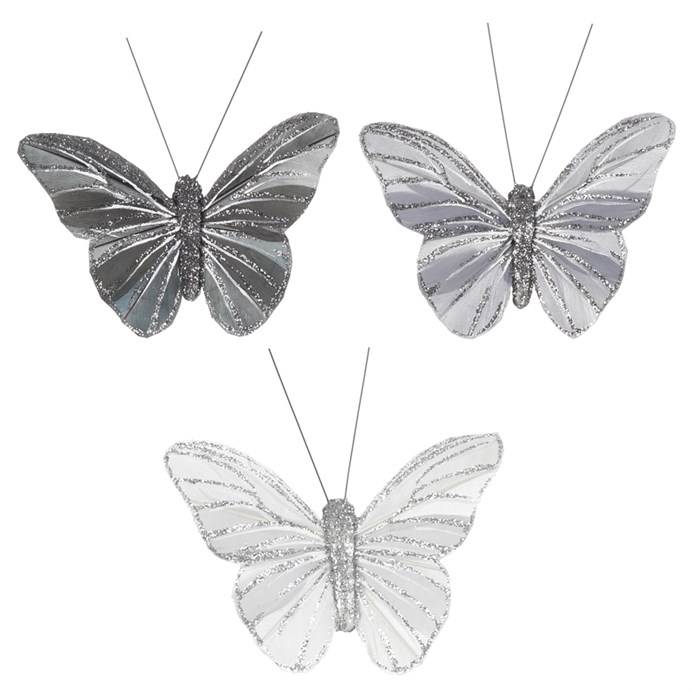 Motýľ s klipom je kúzelným a hravým doplnkom, ktorý prináša živosť, farebnosť a prírodnú atmosféru. Tento motýľ je vyrobený z jemného materiálu, je zdobený trblietkami a vyfarbený do odtieňa šedej farby. Motýľ je vybavený malým klipom, vďaka ktorému sa dá ľahko a bezpečne pripevniť na rôzne miesta. Môžete ho jednoducho pripnúť na závesy, kvetinové aranže, alebo iné dekoratívne predmety, aby ste vytvorili očarujúci efekt. Slúži aj ako originálny doplnok na svadbách, oslavách, alebo ako jednoduchý spôsob, ako oživiť každodenné prostredie.