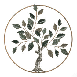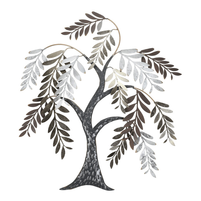Kovová nástenná dekorácia v tvare stromu zaujme svojim prevedením s listami v kombinácii troch farieb – zlatej, striebornej a medenej. Jemné detaily listov a štruktúrovaný povrch kmeňa vytvárajú zaujímavý vizuálny efekt, ktorý oživí každý interiér. Dekorácia je určená na zavesenie na stenu a vďaka svojej veľkosti sa hodí do obývacích izieb, chodieb alebo kancelárií. Povrchová úprava kovu je navrhnutá pre dlhú životnosť a jednoduchú údržbu.