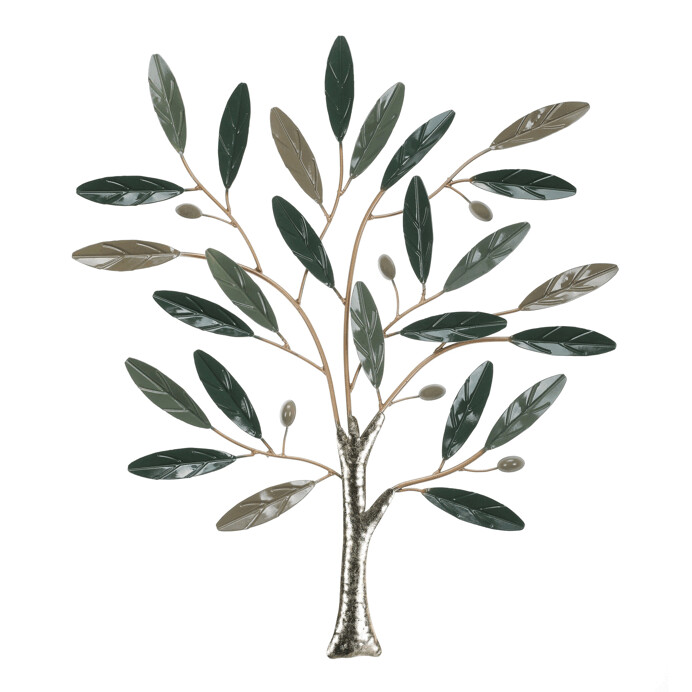 Kovová nástenná dekorácia v tvare stromu olivovníka s listami v rôznych odtieňoch zelenej prináša do interiéru prírodný motív s jemným vizuálnym efektom. Detailné spracovanie listov a vetiev vytvára zaujímavú textúru, ktorá oživí akýkoľvek priestor. Dekorácia je určená na zavesenie na stenu a vďaka svojej veľkosti sa hodí do obývacej izby, chodby alebo kancelárie. Povrch je upravený tak, aby materiál ľahko odolával bežnému opotrebovaniu a zachoval si dlhodobý vzhľad.