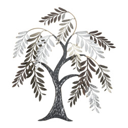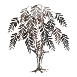 Nástenná dekorácia v tvare stromu je vyrobená z kovu so zlatou povrchovou úpravou, ktorá dodáva priestoru teplý a luxusný vzhľad. Špicaté lístky sú detailne spracované a vytvárajú zaujímavú textúru a hĺbku, vďaka čomu dekorácia vynikne na akejkoľvek stene. Je vhodná na zavesenie v obývacej izbe, chodbe alebo kancelárii, kde podčiarkne štýl interiéru a prinesie prírodný motív v modernom prevedení. Kovové telo zabezpečuje pevnosť a stabilitu celej dekorácie. Rozmery a tvar umožňujú jednoduché umiestnenie aj na menšie plochy.