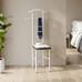 Tichý sluha v bielom laku kombinuje kovové telo s praktickým sedákom z MDF v dekore čierny dub, ktorý dodáva celku príjemný kontrast. Výška 119 cm ponúka dostatok priestoru na zavesenie odevov či doplnkov, zatiaľ čo pevná kovová základňa zabezpečuje stabilitu a nosnosť až 90 kg. Dizajn s niekoľkými priečkami umožňuje efektívne usporiadanie oblečenia a doplnkov, čo z neho robí funkčný doplnok do spálne alebo predsiene. Povrchová úprava kovu bielym práškovým lakom prispieva k dlhej životnosti a ľahkej údržbe. Vďaka kompaktným rozmerom je vhodný aj do menších priestorov.