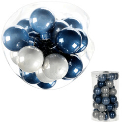 Ozdoby sklenené - pr. 2,5 cm, modré a strieborné, cena za balenie (36 ks)