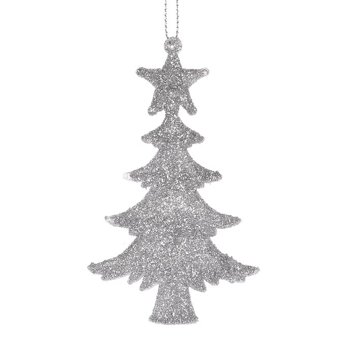Stromček plastový - závesný, strieborný, cena za balenie (2 ks)