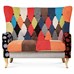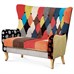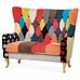 Dvojsedačka, poťah látka patchwork, drevené nohy, masív kaučukovník