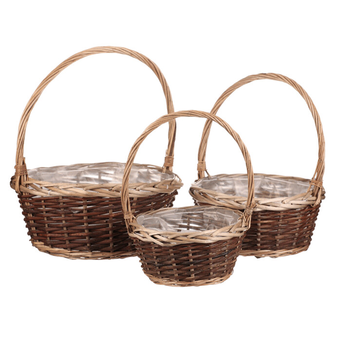 Obal na kvety - prútený košík, cena za sadu 3 ks