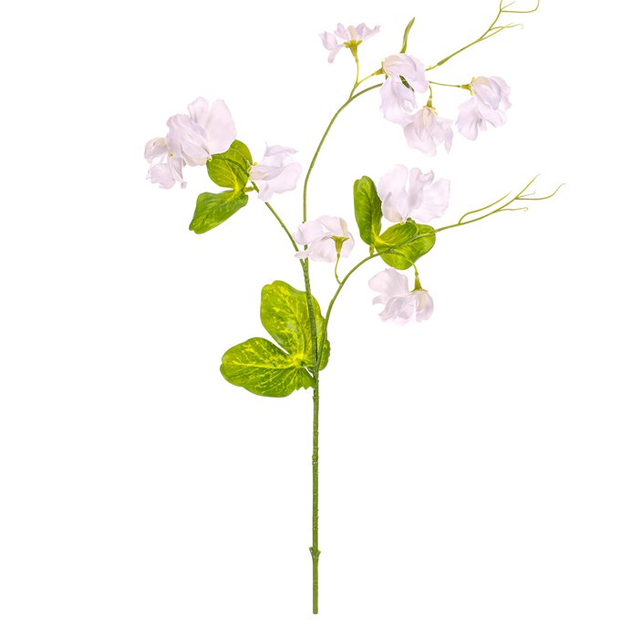 Umelý rezaný hrášok v bielej farbe prináša do interiéru jemný a svieži dekoratívny prvok. Kvety sú vyrobené z textilu, ktorý verne napodobňuje prirodzenú štruktúru a farebné odtiene skutočných kvetov. Vďaka precíznemu spracovaniu detailov pôsobí vetva ľahko a vzdušne, čo ju robí vhodnou pre aranžmány vo váze alebo ako súčasť kvetinových dekorácií. Hrášok je ideálny na dlhodobé použitie bez potreby údržby a zachováva si stálosť farieb aj tvaru.