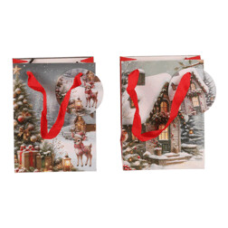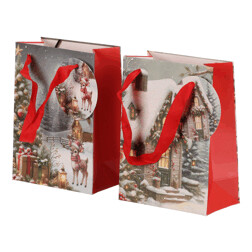 Taška papierová - zimná krajina, mix 2 druhov, veľ. XS, cena za 1 ks