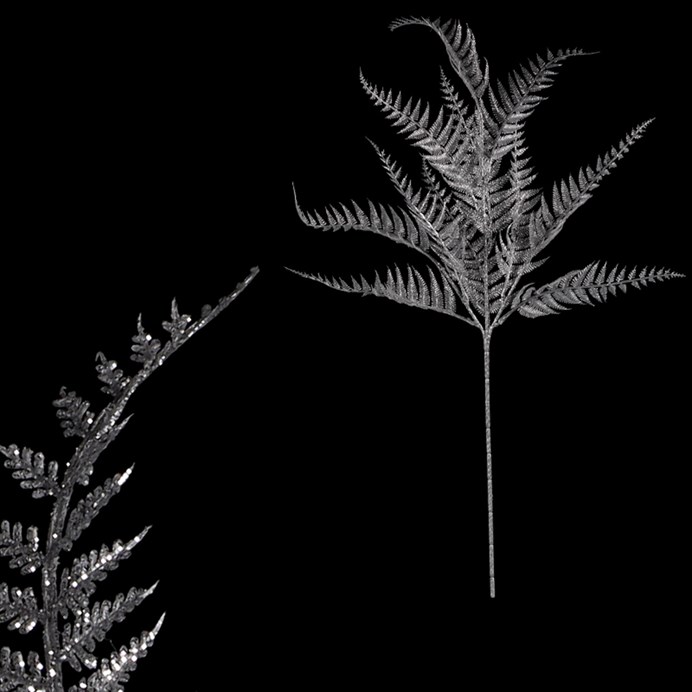 Paprade - umelá vetva, strieborná s trblietkami