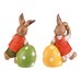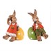 Dekoratívna figúrka zajaca vyrobená z magnézia predstavuje dva varianty v jemne patinovanom hnedom prevedení, kedy každý zajac sedí opretý o farebné vajíčko zdobené bielymi kvetmi – jedno žlté a druhé zelené. Detailne prepracované telo s výraznými ušami a oblečením v pastelových tónoch dodáva dekorácii hravý a prívetivý charakter. Figúrka je vďaka svojmu pevnému základu vhodná pre interiérové aj vonkajšie použitie, kde prispeje k jarnej či veľkonočnej atmosfére. Je ideálny na umiestnenie na poličku, parapet alebo ako súčasť tematickej dekorácie.